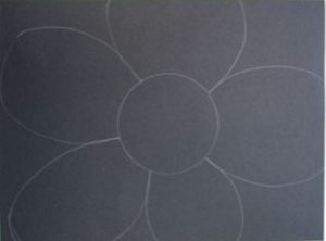 - Begin by drawing a very large poppy on your sheet of paper with your pencil: