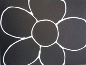 - Trace the outline of the poppy with white glue and let it dry completely before continuing to the next step. To dry it, leave it very flat so the glue does not run.