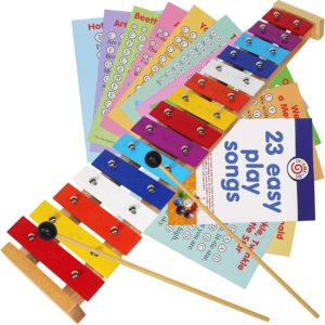 Provided you haven’t just used all your drinking glasses, you can keep the xylophone for as long as you wish. If you would like to continue the learning around music and xylophones, I recommend these toys, which require less supervision. Click the images to see where these items can be purchased.