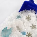 This snow is wonderful for dramatic play as it reminds your child of all the wonderful things that they can do in the winter and re-create a mini version of those activities right in their sensory bin. Presentation is everything, so set it up in a way that inspires your child to be creative with it and imagine all the things that can be added to it or built with it.