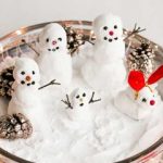 • Voilà! You have amazing snow to play with for the next week or two. Now why not build tiny snowpals (S.T.E.M.)? you could also recreate the scene of snowmen at night – this is ideal for it, and an excellent dramatic play and reading comprehension activity.