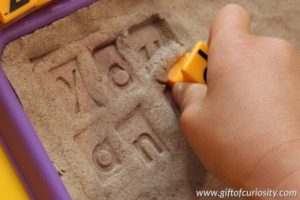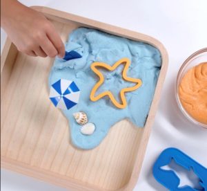 - You can add cookie cutters and other kitchen molds and utensils to the sand, to further fine motor skills learning.