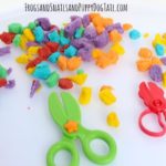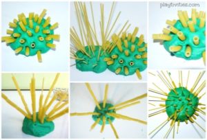 - Create with playdough and pasta (see my recipe for coloured pasta):