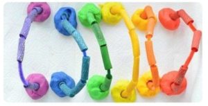 By helping you measure, mix, describe textures and colours, as well as the intensity of the colours as they get absorbed, they will be using math. As they are mixing and pouring, following all the steps, they are learning sequencing, which is great for reading as well as math and science. Kneading is quite an intense process, so it counts as a physical activity.