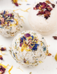 - You can also use ¼ cup dried flowers for Mom and have your bath bombs look like these instead (bonus – you don’t need soap dye, they look good in white!)