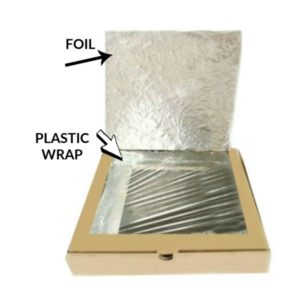 - Cover the lid of the box with plastic wrap and the top with aluminium foil as shown in this picture: