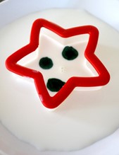 - Add a few drops of red food colouring to the outside of the cookie cutter: